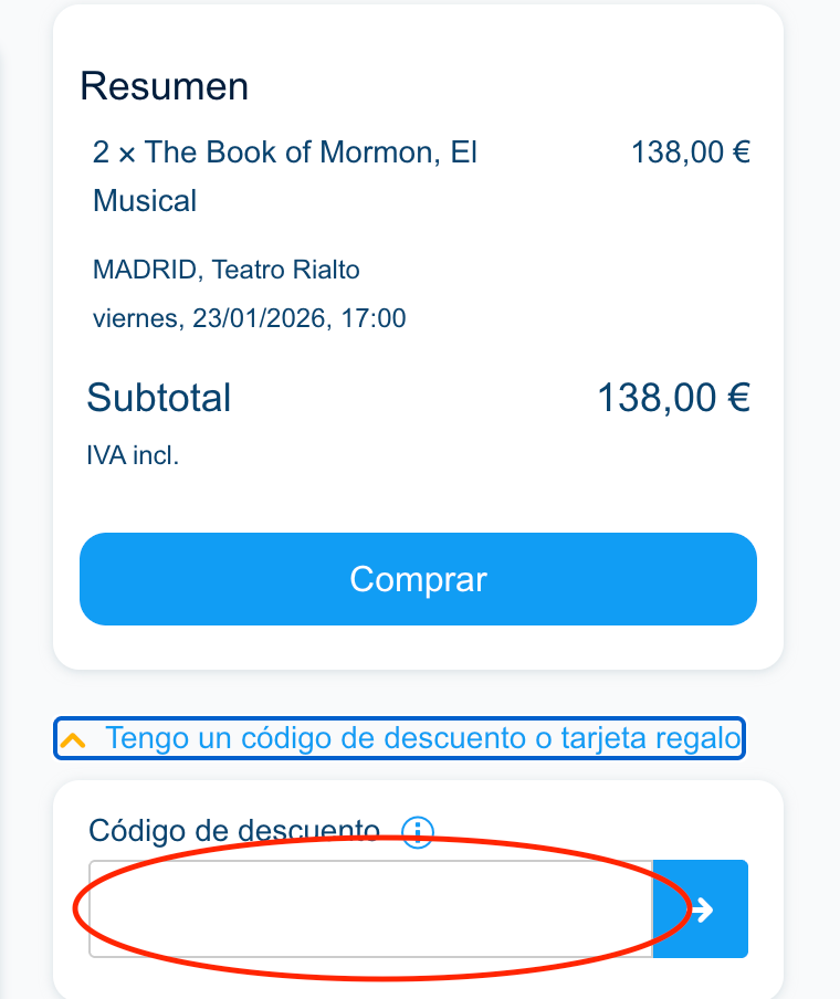 Cómo aplicar un código descuento Entradas.com