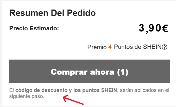 - Durante el proceso de compra de SHEIN, introduce el código promocional en la casilla indicada por la web.
