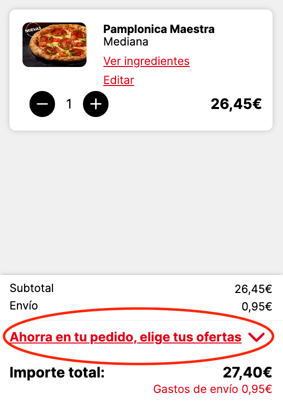 - Debajo del resumen de tu pedido, encontrarás el mensaje "Ahorra en tu pedido, elige tus ofertas".