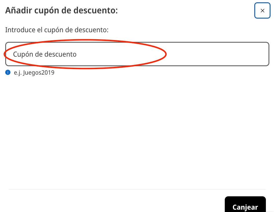 - Pega el código en la casilla, sobre el mensaje "Cupón de descuento".